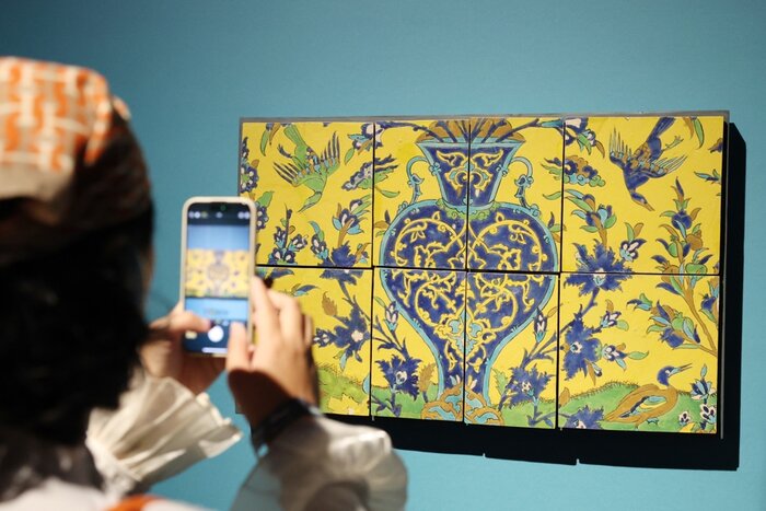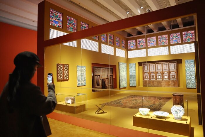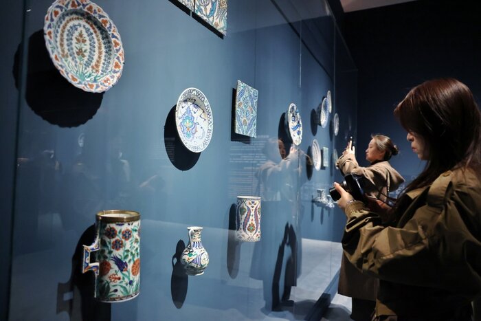 يأخذ القسم الإيراني الزوار في زيارة إلى العصر الصفوي، حين امتزج الشعر بالصور وأصبح الفن لغة الفكر. تُظهر الأواني الفخارية المزينة بالأبيات الشعرية، والأكواب المنقوشة، والزخارف المستوحاة من الحدائق والطبيعة، كيف أن الجمال في إيران لم يكن ترفاً، بل ضرورة ثقافية.