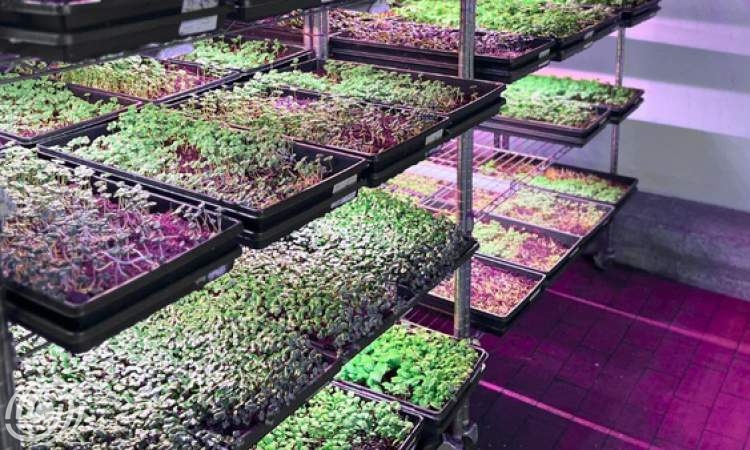 وقال: "في هذا المركز، وباستخدام تقنيات متطورة، تُوفّر ظروف إضاءة ودرجة حرارة وتغذية مُتحكّم بها لنمو الخضراوات الصغيرة، بحيث يُمكن حصاد المحصول في أقل من أسبوع.